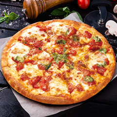 トマトの旨みとコク、イタリア産モッツァレラに北海道マスカルポーネで風味と味わいをプラスした季節限定マルゲリータです。